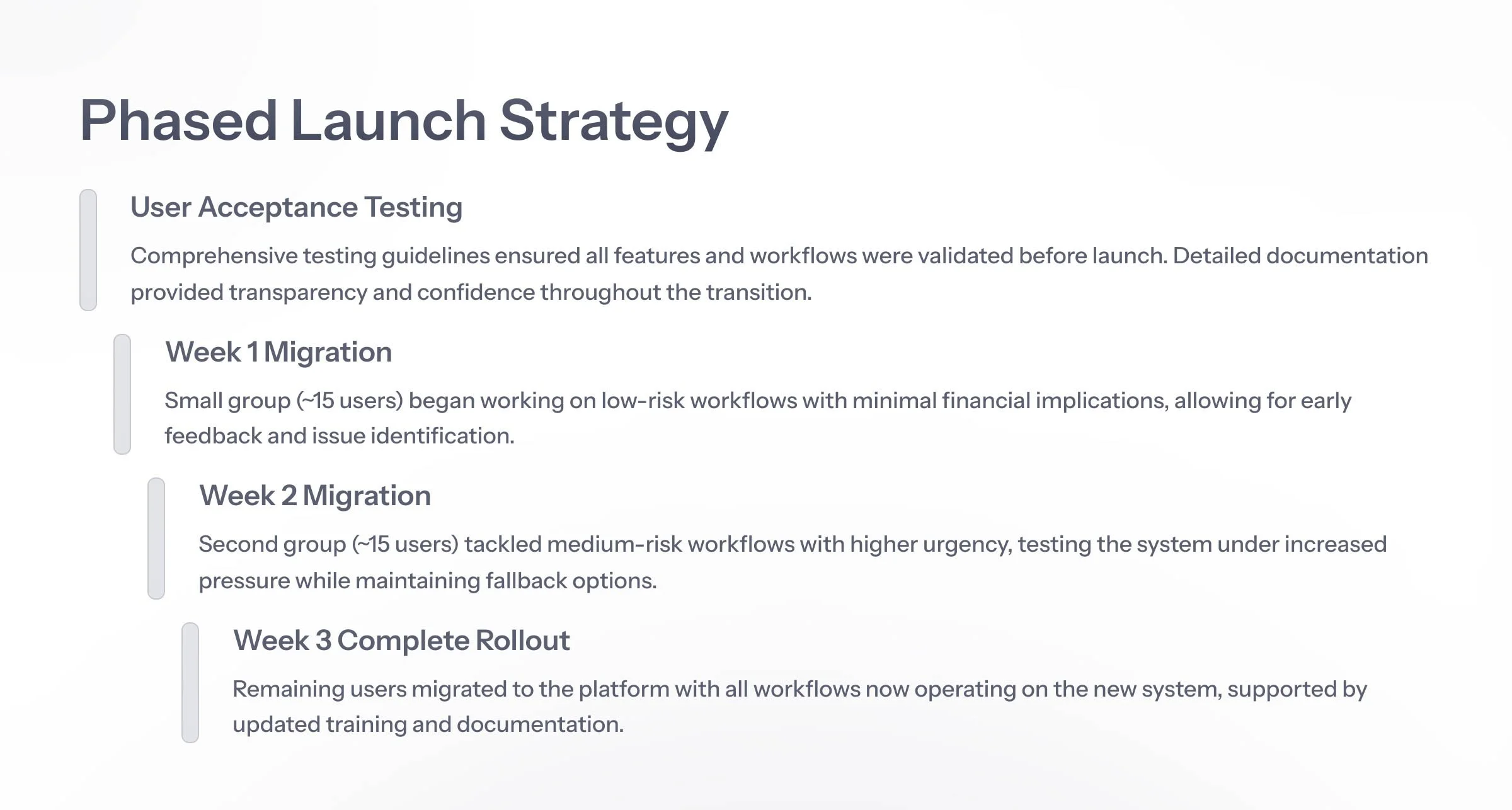 Week 3: Full migration of the fraud team with remaining workflows transitioned